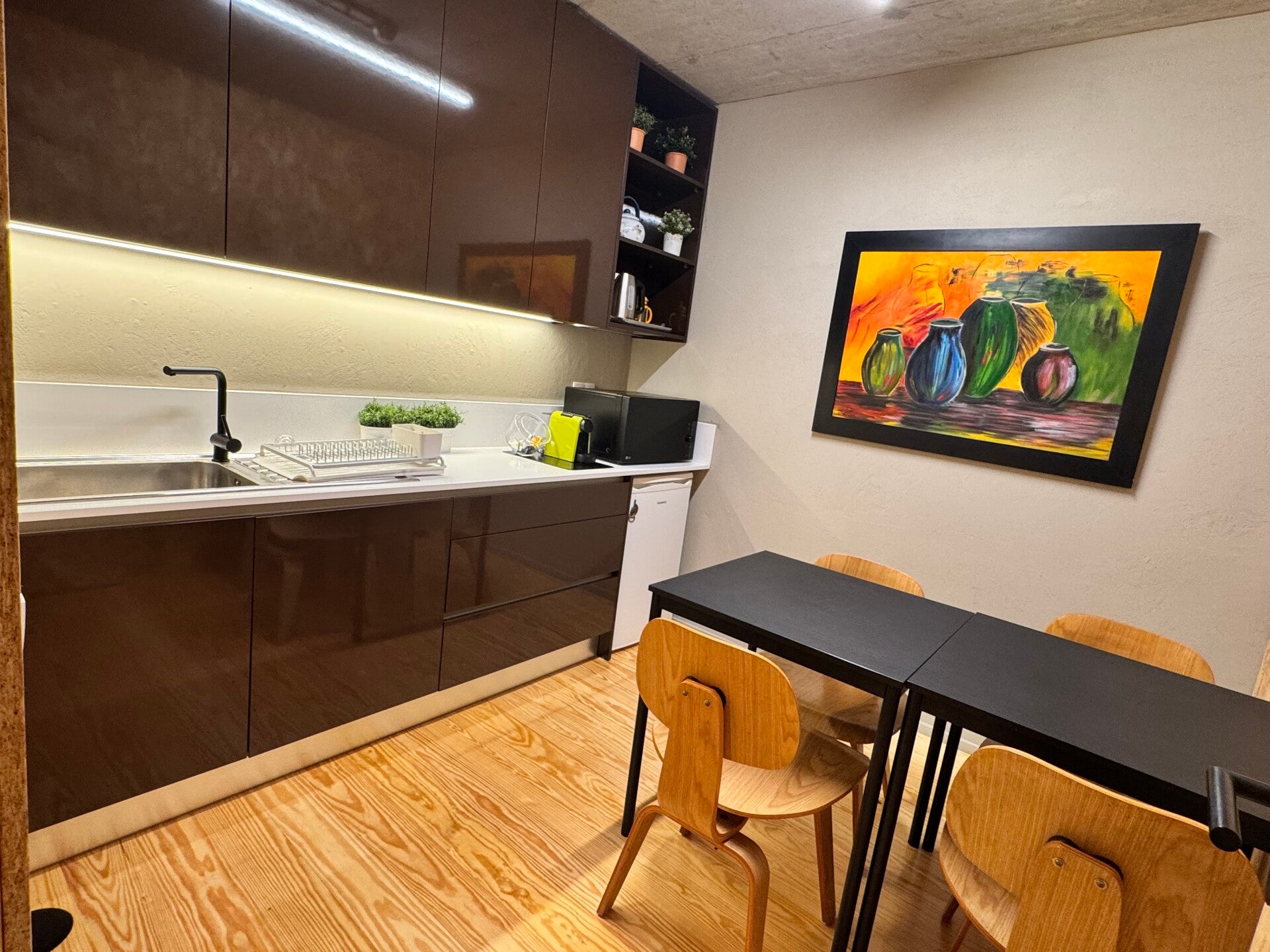 At Et Labora, we believe your workspace should be an extension of your comfort zone. Our cozy space features comfortable seats, bright lighting, and natural wooden floors and walls, creating an inviting atmosphere that promotes focus and relaxation. This biophilic design helps you unwind between tasks, ensuring a productive and pleasant work day.